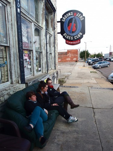 All of Monday was spent traveling throughout the state of Mississippi. First stop: Clarksdale, city in the Mississippi delta (geographic area), and home of the Delta Blues Museum. We toured the museum then walked around the town, and discovered that even though the buildings and roads appeared to be run down, the area was still abuzz with human activity, and it was interesting to be a part of it. We stopped for a picnic lunch beside the famous Crossroads of highways 61 and 49, which stands as a symbolic location in many delta blues songs and histories.