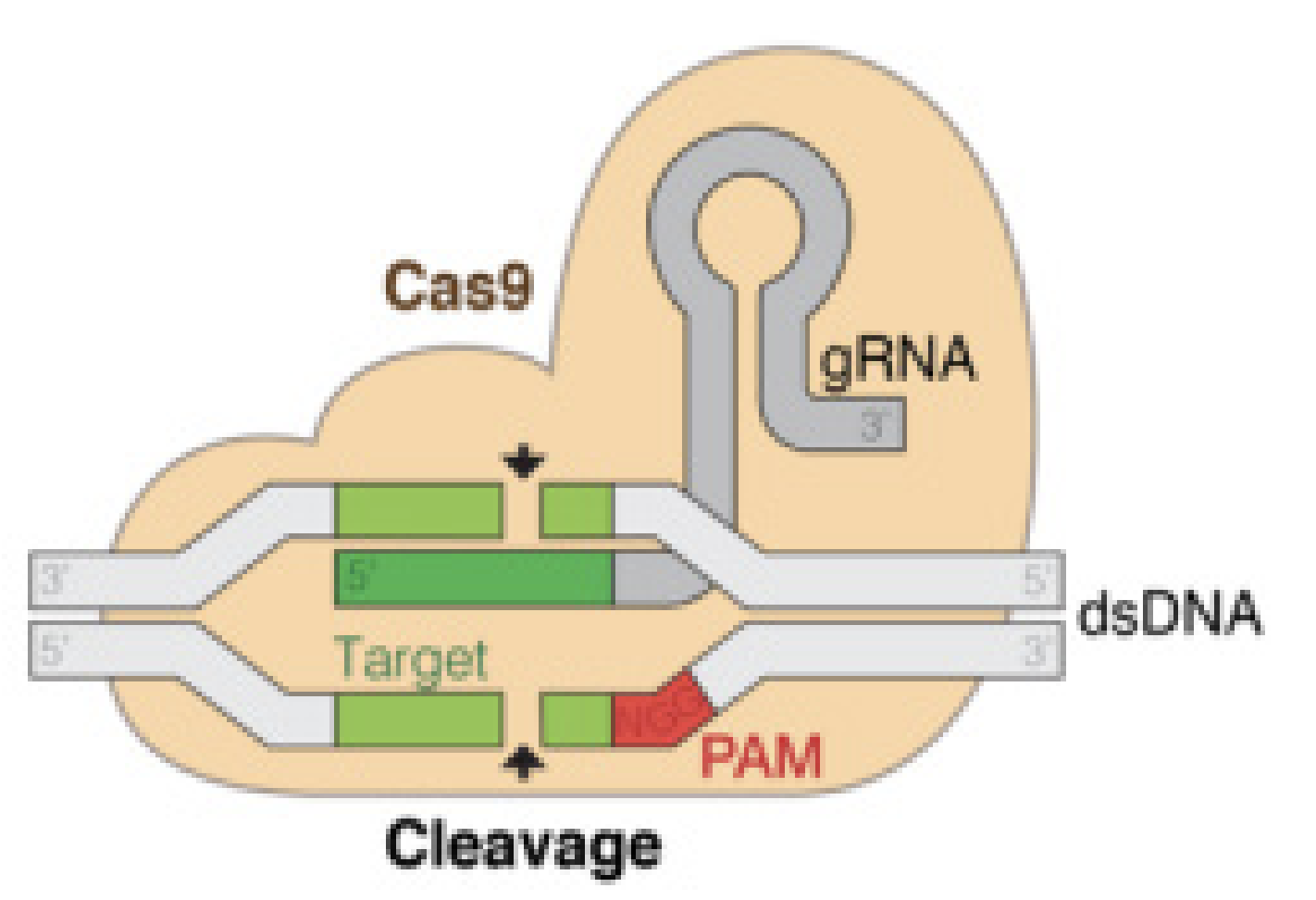 The Cas9 protein, which cuts viral DNA, is the key link between the bacterial immune system and modern gene editing. Scientists such as Jennifer Doudna were struck by Cas9’s ability to recognize specific viral DNA sequences. They hypothesized that this natural precision could be repurposed to target almost any chosen DNA sequence. The first step in this process is designing the appropriate gRNA, which guides Cas9 to the target DNA. To do this, the gRNA must match the target DNA sequence, typically with a sequence of about 20 nucleotides (Thurtle-Schmidt & Lo, 2018). This level of specificity is significant because, while short DNA sequences are often repeated throughout the genome, a 20-nucleotide match reduces the risk of targeting the wrong site. However, even a perfect match between the gRNA and target DNA is not sufficient on its own. Cas9 will only cut the DNA if a short sequence known as PAM (Protospacer Adjacent Motif) is located immediately next to the target site, as illustrated in Figure 1. Cas9 can therefore be used to both locate and cut any desired gene.