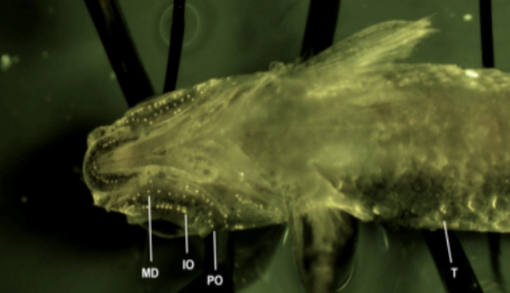 Jones, A. E., Maia, A., Conway, K. W., & Webb, J. F. (2024). The silverjaw minnow, Ericymba buccata: An extraordinary lateral line system and its contribution to prey detection. Integrative and Comparative Biology, 64(2), 459–479. https://doi.org/10.1093/icb/icae111