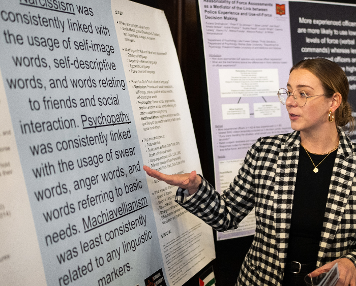 This year, 38 students and seven alumni presented 45 posters total, breaking previous years’ records. Posters included "Measuring Spasticity of Lower limbs in Humans with Spinal Cord Injury" by Hridey Kapoor ’25 and "Linguistic Markers of the Dark Triad: A Systematic Review" by Amelie Motzer ’24, among others.