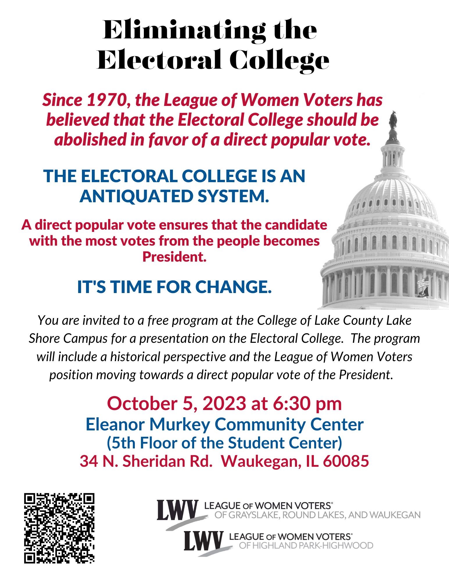 The program will include a historical perspective and the League of Women Voters position moving towards a direct popular vote of the United States President.