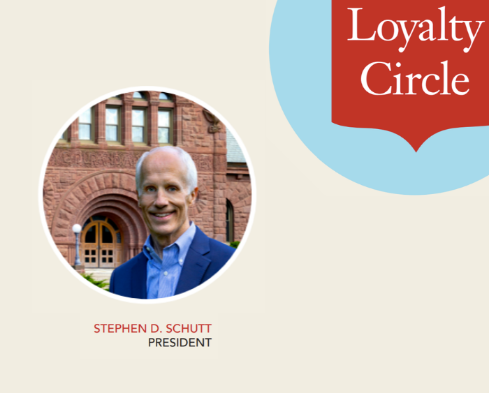As vaccines become more widely available and the pandemic begins to wane, the College looks forward to the 2021-22 academic year and beyond as a rejuvenating, productive time for our students, faculty, and staff. Enrollment deposits for next fall are running well ahead of past years, the historic Brown Hall renovation and expansion project is nearly finished, and our national rankings have never been better. We have come through this unprecedented year by working together as a community, and we will advance rapidly ahead in the same way. The College’s success is yours. Thanks to all Loyalty Circle members for your unwavering support, and I look forward to seeing you at Homecoming next fall!