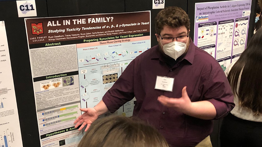 Megi Diasamidze ’23, Nathaniel Kregar ’22, and Ryan Osselborn ’23 presented their undergraduate research, which they conducted either at the College or at Rosalind Franklin University of Medicine and Science.