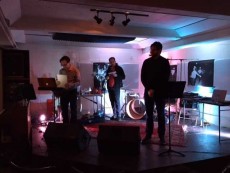 Associate Professor of English Josh Corey and Professor of English Davis Schneiderman, billed as The Muttering Sickness, were the closing performers of Indiana University’s “Wounded Galaxies” festival and symposium on February 10.