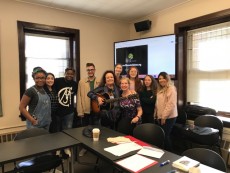 Dr. Evelyne Accad, Lebanese author, activist, composer and professor emerita of the University of Illinois (Urbana-Champaign) visited Prof. Cynthia Hahn’s French 212, 330 and 460 classes this April, to discuss her novels and short stories regarding the condition of women in the Middle East, North Africa, Europe and the U.S. Accad related her challenges in supporting a shelter for abused women with her sister in Beirut, Lebanon, and also spoke about the current Syrian refugee situation there and her family’s involvement in providing humanitarian aid and education to refugee children living in the capital.
