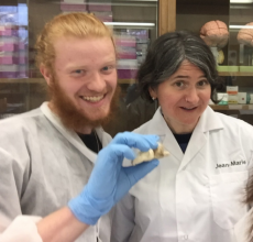 Joseph Bortolotti ’17 (left) gloats over his hippocampal dissection during Behavioral Neuroscience laboratory with Assis...