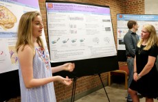 High school student Kennedy Kerr (left) and transfer student Katy Shadek '20 present results of their memory and learning ...