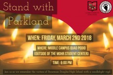 Student Government will host a candlelight vigil at 6 p.m. Friday, March 2, on the Middle Campus Quad to remember the 17 students and teachers who lost their lives in the Parkland, Florida school shooting.