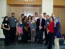 Lake Forest College students meet and have lunch with and hear a seminar 1997 Nobel Laureate in Medicine Dr. Stanley Prusi...